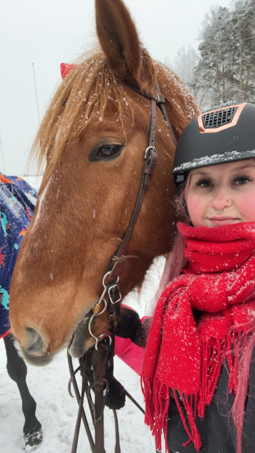 Kuljen tallille pitkän matkan takaa, koska tallin ilmapiiri on rennon rempseä, missä jokainen saa olla omantasoinen ja kaikkia autetaan aina mielellään. Opetus on itselleni sopivan rentoa ja tunnit lopetetaan aina hetkeen, jossa sekä hevosella että ratsastajalla on hyvä fiilis.